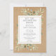 Com delicadas folhas de aquarela em um fundo rústico boho kraft, este convite simples e neutro em termos de gênero para chá de bebê, celebração ou chá de casal pode ser personalizado com os detalhes do seu evento especial, com um fundo verde floresta no verso. Criado por Thisisnotme©