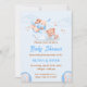 Convite Chá de Bebê Azul e Marrom com Ursinho de Pelúcia e