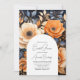 Celebre com estilo com este convite de chá de noiva floral elegante em azul naval, laranja queimado e champanhe, projetado com tons ricos de outono e detalhes botânicos sofisticados. Com flores lindamente em camadas contra um fundo azul naval profundo e um layout arqueado suave, este convite cria uma sensação calorosa e luxuosa perfeita para chás de noiva de outono e celebrações refinadas.