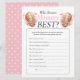 Cartão de jogo de perguntas com aquarela para combinar com a sua coleção de chá de bebê de menina.