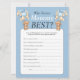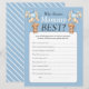 Cartão de jogo de perguntas com aquarela para combinar com a sua coleção de chá de bebê masculino.
