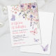 Convite de Chuveiro de Noiva "Uma Vida de Borboletas". Celebre a noiva com este design suave e caprichoso, perfeito para um chuveiro de noiva temático "Uma Vida de Borboletas". A frase "Uma Vida de Borboletas" aparece no topo em caligrafia rosa rosada e grossa para um toque doce e romântico, combinada com uma mistura de fontes clássicas serifadas cinza- roxas para o restante do texto, criando um contraste encantador.