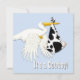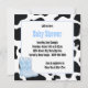 Convites de chá de bebê de cowboy menino adorável cegonha com estampa de vaca. Este convite de chá de bebê de cowboy preto e azul é facilmente personalizado para o seu evento, basta adicionar os detalhes do evento, estilo de fonte, tamanho e cor da fonte e texto.