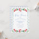 Junte-se a nós para um tema de chá de bebê de cerejas vermelhas doces com uma moldura simples azul e verde e fonte azul coordenada. Tão fofo para o chá de bebê da menina ou do menino. 100% de satisfação do cliente com o “Zazzle”