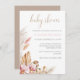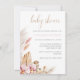 Celebre a futura mamãe com este convite de chá de bebê elegante. Este convite apresenta um tema de grama pampas floral boho com tons terrosos neutros. Personalize o texto para criar o anúncio perfeito do chá de bebê.