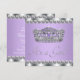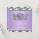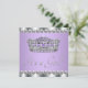 Linda tiara prateada e roxa com cordões de diamantes solitários. Este convite de chá de bebê de princesa roxo lavanda e cinza é facilmente personalizado para o seu evento, adicionando detalhes do evento, estilo de fonte, tamanho e cor da fonte e texto.