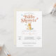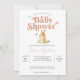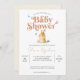 Um convite de chá de bebê moderno e fofo com uma ilustração em aquarela de um coelho com borboletas. O verso é em uma cor neutra.