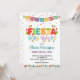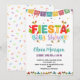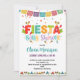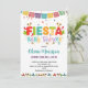 Convite de Chá de Bebê divertido e festivo com bandeiras coloridas de papel picado, maracas, pimentões, cactos e letras divertidas. Perfeito para um chá de bebê animado inspirado no México...