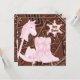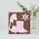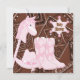Lindo lenço marrom com botas de cowboy rosa, chapéu de cowboy, distintivo de xerife e convites de chá de bebê de cowgirl com cavalo de pau. Adicione seus detalhes na frente e/ou no verso deste convite de chá de bebê cowgirl rosa e marrom adicionando detalhes do evento, estilo de fonte, tamanho e cor da fonte e texto.