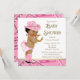 Convite de chá de bebê de vaqueira étnica. Convite de chá de bebê cor-de-rosa e dourado com adorável bebê vaqueira étnica segurando uma ferradura dourada em um lindo fundo cor-de-rosa e dourado. Você pode personalizar facilmente este convite de chá de bebê vaqueira cor-de-rosa por simplesmente adicionando os detalhes do seu evento no estilo de letra, cor e redação de sua escolha. Você também pode alterar a cor do fundo. Este é um design impresso sem diamantes, joias, glitter, etc. reais.