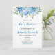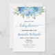 Convite de Chá de Bebê da Mamãe Hydrangea Azul Aquarela.