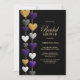 Convide seus amigos e familiares para celebrar seu próximo casamento com este convite de chá de noiva em roxo e dourado com corações. Sofisticado e refinado, este convite define o tom perfeito para uma alegre celebração pré-casamento cercada pelas pessoas que você ama. Você pode adicionar facilmente todos os detalhes necessários ao texto personalizável. Escolha entre vários tipos de papel e estilos de canto para tornar seus convites únicos. Além disso, você tem a opção de baixar o convite se preferir um formato digital.