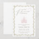 Celebre a chegada de uma pequena princesa com este convite de chá de bebê de castelo de contos de fadas elegante. Com um castelo de princesa em tons pastel suaves cercado por flores românticas de jardim, este design cria uma atmosfera mágica de livro de histórias perfeita para uma celebração real de chá de bebê.