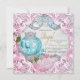 Convite de chá de bebê de princesa real meninas rosa chique e azul turquesa com bela carruagem real e lindo rosa e azul turquesa rosa e brilho prateado fundo cintilante com espirais rosa elegantes. Este convite de chá de bebê de princesa elegante é facilmente personalizado para o seu evento, basta adicionar seus detalhes no estilo de letra e cor, e na redação de sua escolha. Este é um design impresso sem pedras preciosas reais, fitas, brilho, etc.