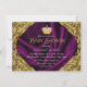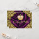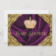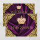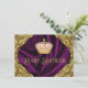 Convite de chá de bebê princesa rosa e dourado elegante e sofisticado. Este convite de chá de bebê real com redemoinhos dourados sobre fundo de cetim roxo e coroa rosa e dourada é facilmente personalizado para o seu evento, basta adicionar os seus detalhes no estilo de letra e cor, e na redação de sua escolha.