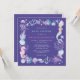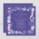 Convite de chá de bebê roxo de sereia de aquarela sob o mar adorável. O design feminino apresenta uma sereia, criaturas sob o mar, conchas marinhas e recife de coral em estilo de aquarela.