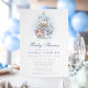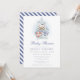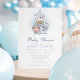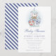 Celebre a chegada iminente de um bebê menino com este convite de chá de bebê temático náutico adorável. Com destaque para um urso em aquarela em um barco à vela com detalhes marinhos, este design é perfeito para uma reunião inspirada no mar. Tons azuis suaves e ilustrações encantadoras adicionam um toque caprichoso à celebração.