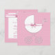Adorável bolinhas rosa com carruagem de bebê branca elegante envolta em um laço rosa doce. Convite de chá de bebê menina de bolinhas rosa elegante e doce. Adicione seus detalhes na frente e/ou verso adicionando os detalhes do seu evento, estilo de fonte, tamanho e cor da fonte e texto.