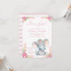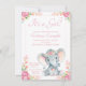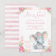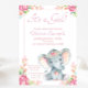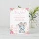 Convites de chá de bebê de elefante menina com adorável elefante em aquarela com lindas flores cor-de-rosa na cabeça em um lindo fundo floral cor-de-rosa. Estes convites de chá de bebê de elefante fofo são facilmente personalizados para o seu evento, basta adicionar seus detalhes.