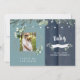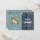 Convite de Chá de Bebê Rústico por Correio. Luzes de Corda. Cerca de Madeira. Fundo Azul Turquesa e Azul Marinho. Presencial. Foto.