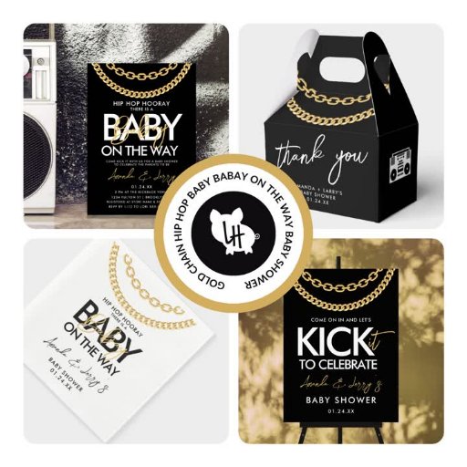 Este convite de Chá de Bebê de Hip Hop Preto e Dourado vai intrigar seus convidados com a expectativa de um chá de bebê descontraído. Há um Bebê a caminho e é hora de celebrar ao estilo verdadeiro do hip hop.