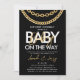 Convite Chá de Bebê de Hip Hop Preto e Dourado