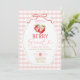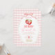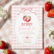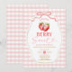 Convite Chá de Bebê de Morango com Laço Rosa em Xadrez