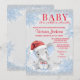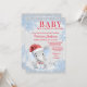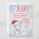 Convites de chá de bebê de Natal para menino com elefante de aquarela fofo com chapéu de Papai Noel e gravata borboleta em um lindo fundo azul de neve de inverno. Este convite de chá de bebê está frio lá fora é facilmente personalizado para o seu evento, basta adicionar o texto de sua escolha. Você também pode alterar a cor do fundo na frente e atrás.