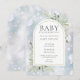 Com delicadas folhas de aquarela florestal em um fundo de um país das maravilhas de inverno com flocos de neve caindo. Este convite de chá de bebê ou sprinkle neutro em termos de gênero pode ser personalizado com os detalhes da sua celebração especial em tipografia moderna. Projetado por Thisisnotme©