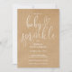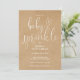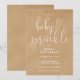 Este convite de chá de bebê de revelação neutro com grafia elegante pode ser personalizado com todas as informações da sua celebração especial em um fundo kraft rústico. Criado por Thisisnotme©