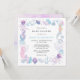 Convite de chá de bebê de sereia em aquarela adorável. O design feminino apresenta uma sereia, criaturas marinhas, conchas e coral em estilo aquarela.