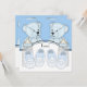 Convites de chá de bebê de gêmeos meninos com adoráveis ursinhos de pelúcia azuis, mamadeiras e botinhas. Tão fofo!! Adicione seus detalhes na frente e/ou verso adicionando detalhes do evento, estilo de fonte, tamanho e cor da fonte e texto.