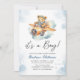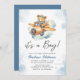 Convite de Chá de Bebê de Urso de Pelúcia em Aquarela para Menino Moderno. Personalizável.