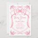 Convite Chá de Bebê Delicado com Laço Rosa em Aquarela