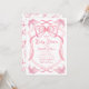 Apresentamos o nosso convite de chá de bebê com laço rosa em aquarela delicada, a combinação perfeita de elegância e charme para definir o tom de uma celebração memorável. Este convite lindamente desenhado apresenta tons suaves de aquarela em tons delicados de rosa, acentuados por um laço pintado à mão para um toque de doçura. A paleta pastel suave, combinada com tipografia graciosa, dá a este convite um sentimento atemporal e caprichoso - ideal para dar as boas-vindas ao seu pequeno com amor e estilo.