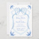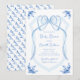 Convite Chá de Bebê do Brasão de Fita Floral Azul Aquarela