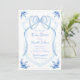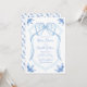Personalize este convite de chá de bebê elegante e caprichoso com brasão pintado à mão em floral azul aquarela com seus próprios detalhes. Perfeito para a celebração do chá de bebê "é um menino".