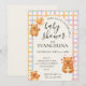 Chá de bebê do capivara fofo, mostrando um trio de capivaras em aquarela com um arco de creme pálido e um padrão de crisscross em cores pastéis ao fundo. Convite de chá de bebê ideal para a chegada do seu capy. Papelaria e suprimentos de festa combinando disponíveis.