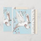 Convites de chá de bebê do cegonha vintage bege e azul bebê. Este adorável convite de chá de bebê vintage para menino é facilmente personalizado para o seu evento adicionando os detalhes do evento, estilo de fonte, tamanho e cor da fonte e texto. Por favor, note que todos os adesivos, cartões e desenhos de convite que você encontrará no Zazzle são gráficos impressos sem joias, laços, relevos, rebaixos ou peças adicionais.