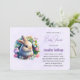 Um convite de chá de bebê com uma ilustração adorável. Um pequeno coelhinho marrom e branco. Rodeado por lindas flores da primavera.