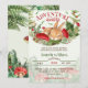 O convite de chá de bebê temático "Aventura Espera" apresenta um coelhinho sonolento aninhado em uma grinalda botânica exuberante, cercado por samambaias e cogumelos caprichosos. Neutro em gênero e encantador, captura a beleza do abraço da natureza para a celebração do seu chá de bebê. Não se esqueça de descobrir a coleção completa.