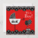 Adorável trem vermelho, branco e preto e convite para o chá do bebê carruagem. Adicione os seus detalhes à frente e/ou atrás adicionando os detalhes do evento, estilo da fonte, tamanho da fonte e cor e texto.