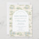 Dê as boas-vindas a um pequeno com este encantador design de dinossauro inspirado em livro de histórias, apresentando ilustrações em azul suave e um delicado toque de berçário vintage. O padrão de dinossauro divertido combinado com um layout arqueado limpo cria uma aparência suave e atemporal, perfeita para um chá de bebê aconchegante e alegre. Com sua paleta de cores suaves e estética clássica de livro de histórias, este design parece quente, convidativo e adorável sem esforço – ideal para celebrar um menino ou um evento caprichoso com tema de dinossauro.