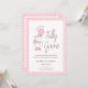 Celebre a futura mamãe com este convite de Chás de Bebê Ganso Bobalhãozinho Doce, apresentando um adorável ganso desenhado à mão em estilo cottagecore com um laço rosa e balão contra um charmoso fundo xadrez rosa. Detalhes delicados inspirados em coquette e tons pastéis suaves criam um design divertido e caprichoso, perfeito para a celebração de uma menina.