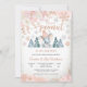 Celebre seu dia especial com este encantador convite de chá de bebê de inverno, apresentando um adorável elefante bebê em um chapéu listrado rosa, cercado por pinheiros nevados, detalhes em dourado e detalhes florais delicados. Perfeito para homenagear os futuros pais, este design caprichoso combina elegância sazonal com charme lúdico. Personalize com os detalhes do seu evento para criar um souvenir memorável que os convidados adorarão. Ideal para celebrações de inverno, este convite adiciona calor e alegria ao seu encontro.