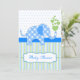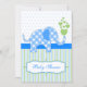 Convite Chá de Bebê do Elefante Xadrez Azul