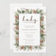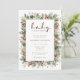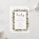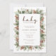 Este convite de chá de bebê 'baby it's cold outside' apresenta folhagens e pinhas pintadas à mão em aquarela dispostas como uma bela moldura. O texto é marrom e o fundo é branco. O verso inclui um buquê elegante e correspondente. Encontre itens correspondentes na coleção de Natal Pinecone e Greenery Christmas Holiday.