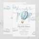Este convite de chá de bebê encantador apresenta um lindo balão de ar quente azul e nuvens, juntamente com uma tipografia elegante. Concebido por Thisisnotme©