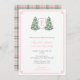 Este elegante design de convite de chá de fraldas apresenta Árvores de Natal verdes estilizadas em planadores de chinoiserie decorados com bolhas rosa e brancas. Em frente a estes, encontra-se uma forma de crachá/escudo que contém a inicial do bebê (pode utilizar-se a primeira letra inicial, se conhecida, ou a primeira letra do apelido). Os elementos aquosos foram pintados manualmente por mim antes de serem digitalizados em forma digital (a forma do escudo é de outro artista). Observe que você pode alterar a cor da borda na frente (atualmente uma rosa claro) digitando a ferramenta design e alterando a cor de fundo do lado frontal. No verso está uma impressão rosa e verde xadrez. Mostrado aqui para um chá de fraldas, mas todo o texto é personalizável para suas necessidades, de modo que você também poderia usar isso como um convite para chás de casamento, por exemplo.