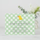 Aqueça a alma dos seus convidados com o nosso querido convite de Chá de Bebê do Pequeno Pato! Uma ilustração doce de um pato de borracha flutua sobre um fundo xadrez suave em verde.